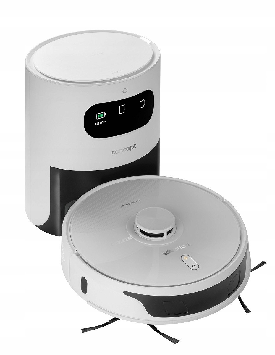 Rozpoznaje kapcie, skarpetki i zabawki na podłodzeDzięki zaawansowanej technologii 3D z trójwymiarowym rozpoznawaniem przedmiotów nie musisz już kontrolować podłóg przed sprzątaniem. Robot potrafi w czasie rzeczywistym rozpoznać nawet drobne przedmioty (od wysokości 2 cm) i dostosować do nich trasę sprzątania. Nie utknie z powodu zapomnianej skarpetki, nie wplącze się w zasłony ani nie przewróci miski z wodą Twojego zwierzaka. Rozpoznaje większość przedmiotów, które mogą znajdować się na podłodze w typowym domu, takich jak kapcie, skarpetki, miski dla zwierząt, zabawki, paczki chusteczek, książki, ubrania, koce, a nawet zasłony dotykające podłogi.Na czym polega różnica między robotem sprzątającym z technologią 3D a innymi robotami z nawigacją laserową?Robot sprzątający z mopem 3D Concept VR3450 orientuje się dzięki zaawansowanej technologii Laser Inside Navigation z trójwymiarowym rozpoznaniem przedmiotów Triple Laser Beam 3D Scan. Na czym polega różnica między tą technologią a standardową nawigacją laserową? Zdecydowanie w detekcji przedmiotów. Możesz się o tym przekonać na poniższym filmie.Zaawansowana laserowa nawigacja Triple Laser Beam 3DRobot sprzątający 3D Concept VR3450 korzysta z zaawansowanej laserowej nawigacji Triple Laser Beam 3D Scan, która łączy główne zalety technologii laserowej i kamerowej. Zamiast kamery wykorzystuje trzy laserowe czujniki, które zapewniają bardzo dokładne mapowanie przestrzeni, w tym trójwymiarowe rozpoznawanie przedmiotów.Samodzielne sprzątanieStacja ładująca z automatycznym opróżnianiem pojemnika na kurz pozwala robotowi sprzątającemu VR3450 na pełną autonomię. Eliminuje potrzebę ręcznego opróżniania pojemnika na kurz i umożliwia dłuższe działanie bez potrzeby konserwacji. Robot automatycznie opróżnia pojemnik na kurz do worka, który znajduje się wewnątrz stacji. Worek ten może pomieścić 3,5 l zanieczyszczeń, co wystarcza na dwa miesiące normalnego sprzątania (w zależności od częstotliwości sprzątania i stopnia zanieczyszczenia). Nie musisz się o nic martwić. Robot opróżni pojemnik nawet z zamontowanym mopem. Gdy worek jest pełny, zapali się kontrolka na stacji, sygnalizując konieczność jego wymiany.Omija dywany podczas mopowaniaPodczas mopowania robot dzięki specjalnym czujnikom w porę wykrywa dywan, zatrzymuje się przed nim i omija go. Dzięki temu zaoszczędzisz sporo czasu na ręcznym ustawianiu stref zakazanych.Chroni Twoją prywatnośćZ robotem sprzątającym 3D Concept VR3450 Twój dom będzie całkowicie bezpieczny. Dzięki laserowym czujnikom nie musisz martwić się o utratę prywatności ani o wykorzystanie wrażliwych informacji, co jest częstym problemem w robotach sprzątających z systemem kamer. Połączenie kamery i internetu może być nadużywane przez osoby trzecie, które mogą w czasie rzeczywistym śledzić, co dzieje się w Twoim domu. Robot VR3450 chroni Twoją prywatność.Najskuteczniejsza metoda mopowania Y-washRobot sprzątający Concept VR3450 potrafi jednocześnie odkurzać i myć. Wystarczy zamontować pojemnik 2w1 z modułem mopującym, a robot zajmie się zarówno suchym, jak i mokrym sprzątaniem. Elektronicznie sterowane dawkowanie wody z nowatorską metodą mopowania Y-wash potrafią usunąć nawet zaschnięte zabrudzenia. Robot porusza się po trajektorii w kształcie litery 'Y', dzięki czemu każdy kawałek podłogi jest wielokrotnie czyszczony, co zapewnia skuteczniejsze sprzątanie. Moduł mopujący wyposażony jest w mikrofibrę, która absorbuje brud i poleruje podłogę. Tkaninę można łatwo zdjąć i wyprać w pralce.Czujnik przeciw upadkowi ze schodówRobot wyposażony jest w czujnik zapobiegający upadkowi ze schodów. Jest to zintegrowany element bezpieczeństwa, który umożliwia wykrycie schodów i zapobieganie upadkowi robota.Maksymalna moc na dywanachRobot VR3450 jest wyposażony w funkcję Carpet turbo, która aktywuje się, gdy robot wjedzie na dywan. Automatycznie zwiększa siłę ssania do maksimum dla zapewnienia naprawdę skutecznego sprzątania. Po powrocie na twarde podłogi wraca do pierwotnej mocy. Funkcja Carpet turbo działa tylko wtedy, gdy zamontowany jest pojemnik na kurz.Możliwość zapisu do 5 map, idealny do domów wielopoziomowychRobot sprzątający VR3450 jest również idealny do domów wielopoziomowych. Każde piętro można mapować oddzielnie i nadać mu nazwę w aplikacji. W ten sposób można zapisać mapy do 5 pięter. Jeśli chcesz sprzątać na innym piętrze niż to, na którym znajduje się robot, wystarczy go przenieść, wybrać odpowiednią mapę w aplikacji i uruchomić. Zaletą jest to, że robot radzi sobie ze sprzątaniem bez potrzeby kupowania dodatkowej stacji ładującej.Poradzi sobie z każdą powierzchniąRobot sprzątający VR3450 jest wyposażony w uniwersalną szczotkę obrotową, która składa się z kombinacji włosia i gumowych lameli. Nadaje się do sprzątania wszystkich rodzajów podłóg, w tym dywanów. Dwa boczne szczotki zwiększają zasięg odkurzania i dokładnie sprzątają wokół mebli, w rogach pomieszczenia oraz w innych trudno dostępnych miejscach.Wydajny silnik BLDC z siłą ssania 4000 PaOdkurzacz wyposażony jest w cyfrowy bezszczotkowy silnik prądu stałego BLDC, który ma wiele zalet. Jest bardzo wydajny, cichszy, bardziej niezawodny, energooszczędny i ma dłuższą żywotność w porównaniu z konwencjonalnymi silnikami. Przyczynia się również do wysokiej siły ssania odkurzacza, która osiąga 4000 Pa.Zawsze kończy sprzątanieRobot sprzątający 3D VR3450 sprawdzi się zarówno w mniejszych mieszkaniach, jak i przestronnych domach. Nie boi się wielkości żadnej powierzchni i zawsze kończy zaplanowane sprzątanie. Posiada wysokiej jakości baterię Li-Ion o dużej pojemności 5200 mAh, dzięki której może sprzątać do 300 minut na jednym ładowaniu. Gdy pojemność baterii spadnie poniżej 15%