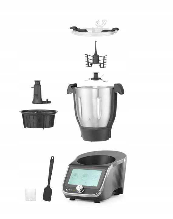 | Funkcje robota kuchennego: | wyrabianie ciasta, mielenie mięsa, blendowanie, kruszenie lodu, krojenie, szatkowanie, ubijanie, rozdrabnianie, podgrzewanie, mielenie, krojenie na plasterki, miksowanie, mieszanie, wyświetlacz LCD, panel dotykowy, ważenie |