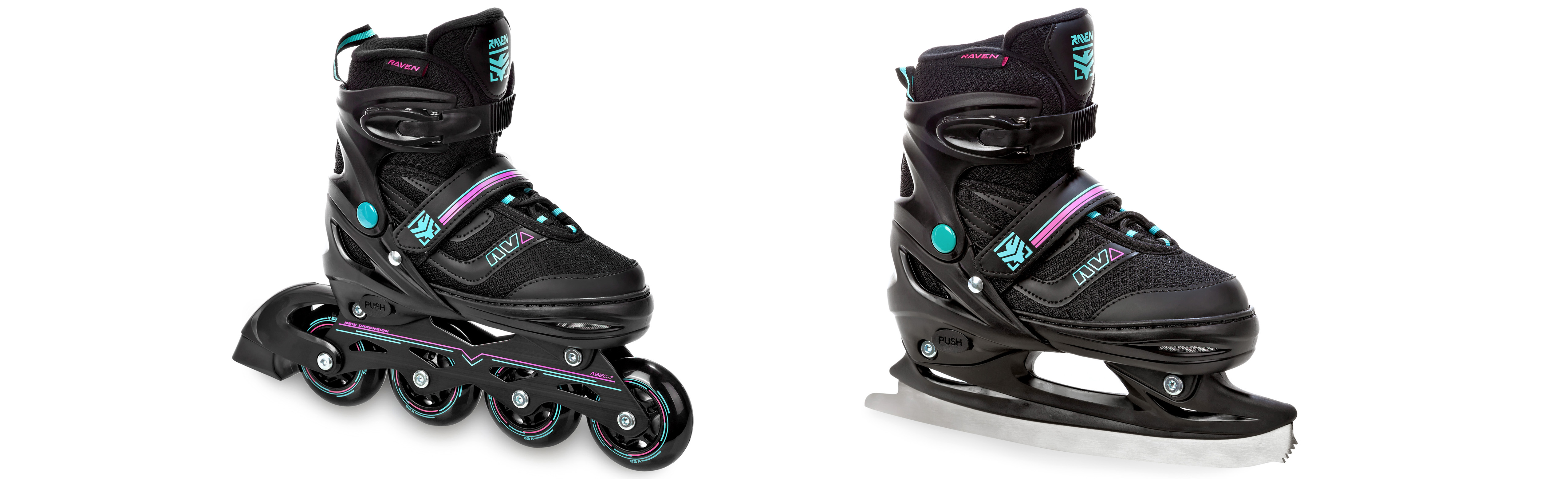 Model 2w1 ma do zaoferowania wymienną płozę łyżwową za pomocą której rolki w prosty i szybki sposób można zmienić w łyżwy.