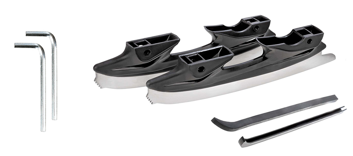 - fabrycznie naostrzone płozy łyżwowe z osłonkami