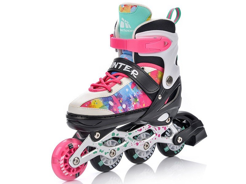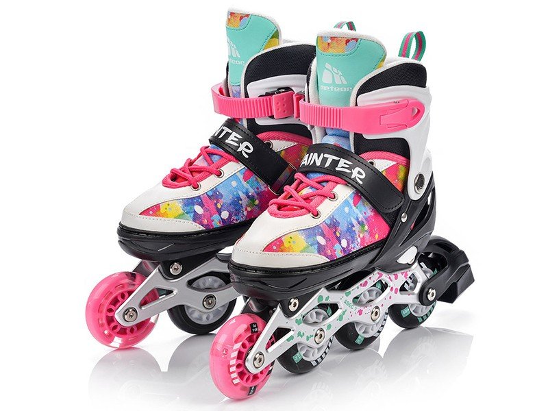 Łyżwy, rolki, wrotki i rolko-wrotki w jednym Dzięki Meteor Painter Twoje dziecko będzie spędzać aktywnie czas zarówno latem, jak i w zimie na lodowisku To najlepszy wybór, który posiada możliwość regulacji rozmiaru. Dzięki temu rolki rosną wraz z dzieckiem, a Ty nie musisz co kilka miesięcy kupować nowej pary. Szybka i bezproblemowa regulacja zajmuje dosłownie kilka sekund i pozwala na właściwe ustawienie buta względem stopy dziecka.