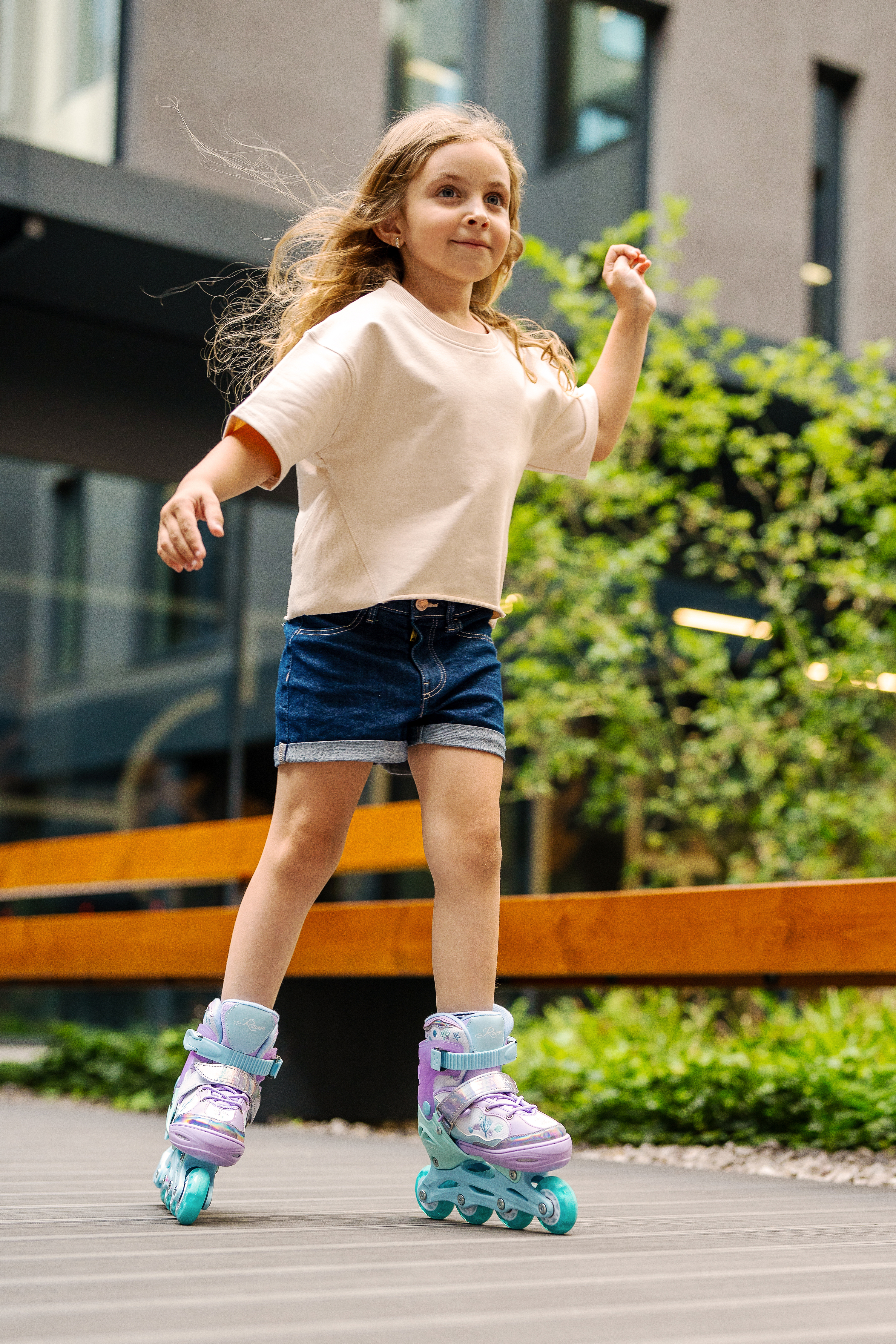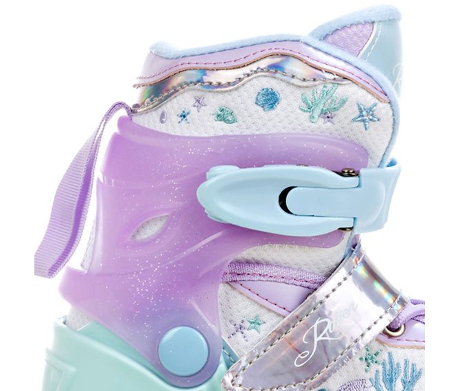 Do zmiany rozmiaru niepotrzebne są żadne narzędzia. Wystarczy nacisnąć przycisk i rozsunąć przednią skorupę buta. Dzięki temu rolki posłużą na wiele sezonów i zawsze będą dobrze dopasowane do rozmiaru stopy.