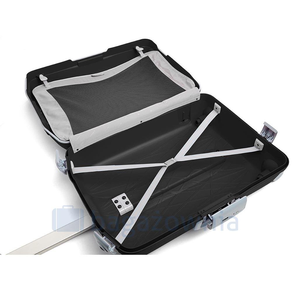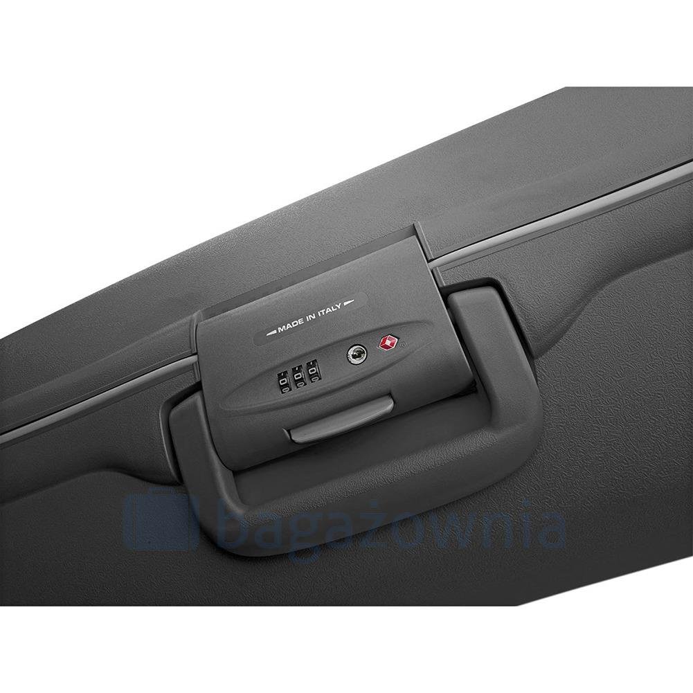 zabezpieczenie TSA walizka posiada 4 zapięcia zabezpieczające w tym jedno szyfrowe niezwykle lekka, obecnie jest to najlżejsza walizka na świecie wykonana z polipropylenu odporna na uderzenia ...