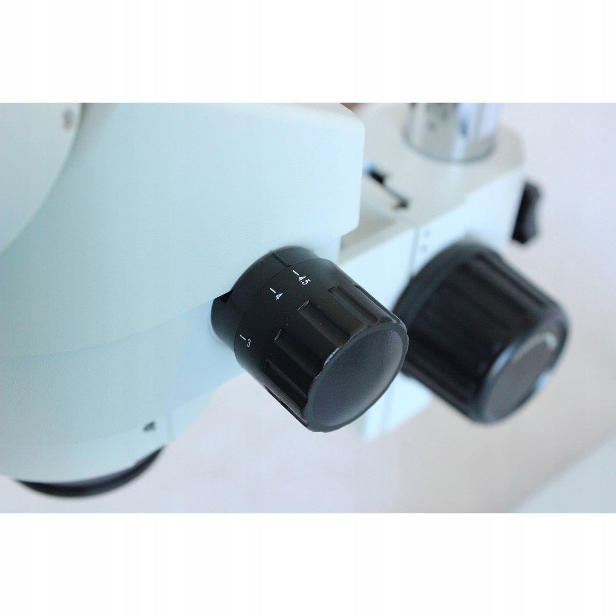 - Standardowo zakres powiększenia na kamerze (z opcją dokupienia) różni się od zakresu bezpośredniego obserwacji przez okular. Dla kamery wynosi około 80-120x, natomiast dla obserwacji przez okular mieści się w zakresie 7-45x. Jest to spowodowane tym iż to co widzimy przez kamerę koryguje tylko optyka mikroskopu, natomiast w przypadku okularu - on sam jak i optyka. Można to skorygować na plus lub minus stosując odpowiednie soczewki dostępne w naszej ofercie (Soczewka 1/3 lub 0,35x do kamery)