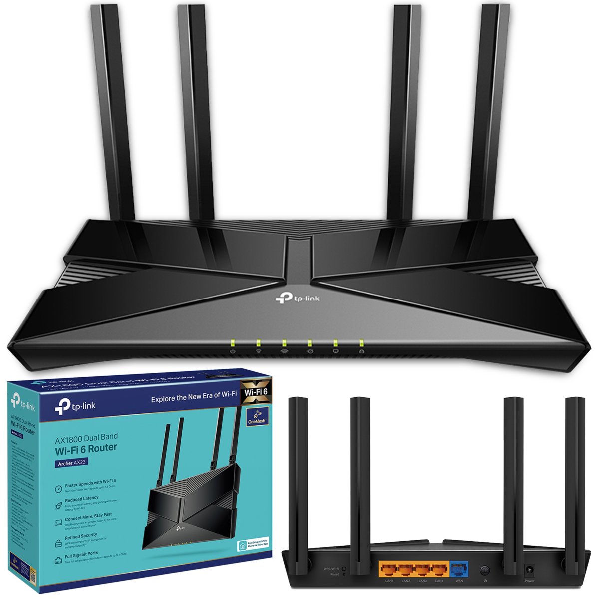 TP-Link Archer AX23 AX1800Dwupasmowy router Wi-Fi 6 1,8 Gb/s, prędkości nowej generacji – Prędkości dochodzące do 1,8 Gb/s w dwóch pasmach zapewniają płynną transmisję ...
