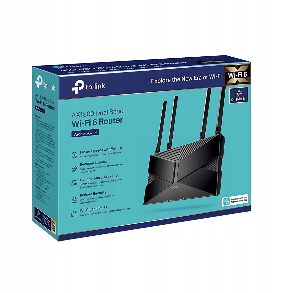 ROUTER WIFI SIECIOWY BEZPRZEWODOWY WIFI6 TP-LNIK ARCHER AX23 5GHZ USB✔️ WI-FI 6 DUALBAND✔️ CZTERY ANTENY DLA WIĘKSZEGO ZASIĘGU✔️ OBSŁUGA ONEMESH DLA PŁYNNEGO POŁĄCZENIA ✔️ WI-FI 6