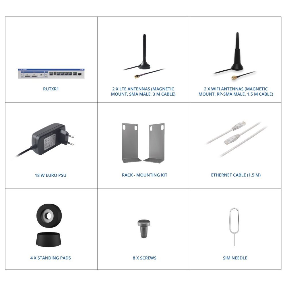 Router Teltonika RUTXR1 – router Dual-SIM 4G/LTE Cat6, Wi-Fi DualBand, 4x Gigabit LAN, 1x Gigabit WAN, 1x SFP, 1x USB, 1x port konsoli RJ45 RS-232, 2x zasilanie, przystosowany do montażu w ...
