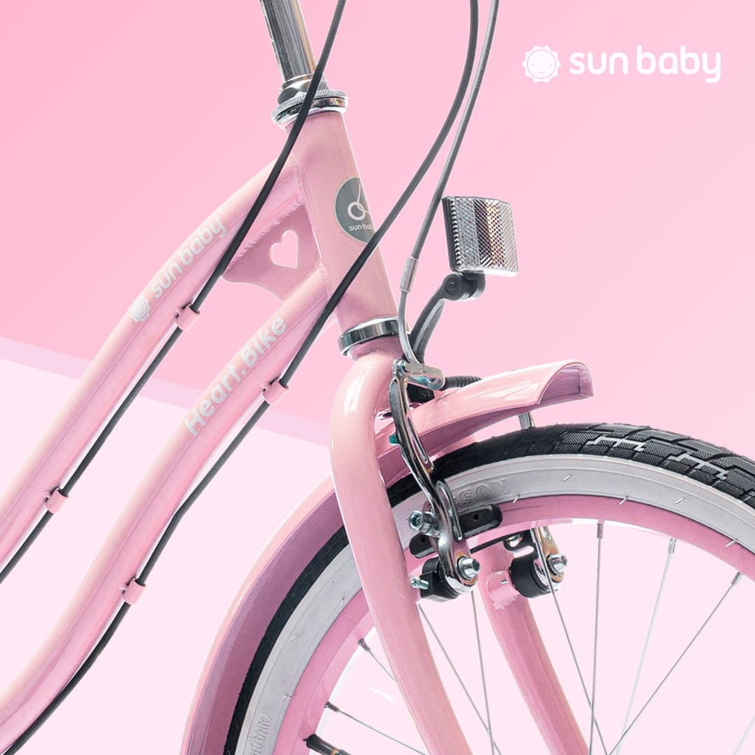 Długie ramię hamulca V-brake sprawia, że lekkie naciśnięcie klamki hamulca daje dużą siłę hamowania i niezawodne działanie nawet na mokrej obręczy. Rowerek Heart Bike jest wyposażony w hamulec V-brake przedniego i tylnego koła.