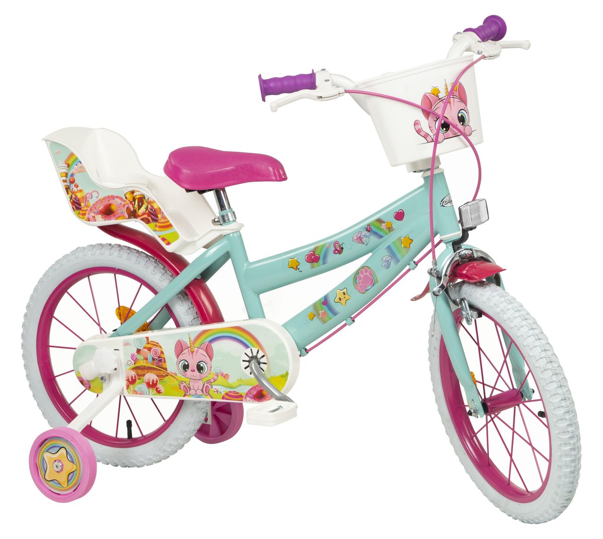 Dziecięcy Rower od TOIMSA Bikes. Koła 16 calowe z bocznymi kółkami pomocniczymi do nauki jazdy. Świetny rower wykonany w wysokiej jakości i wytrzymałych materiałów, o bardzo atrakcyjnym designie. Żywe kolory i wspaniałe ozdoby z ulubionymi bohaterami. Najlepszy rower na rozpoczęcie przygody z pedałowaniem na świeżym powietrzu! Nie czekaj! Już dziś kup dziecku rower z ulubionym bohaterem!