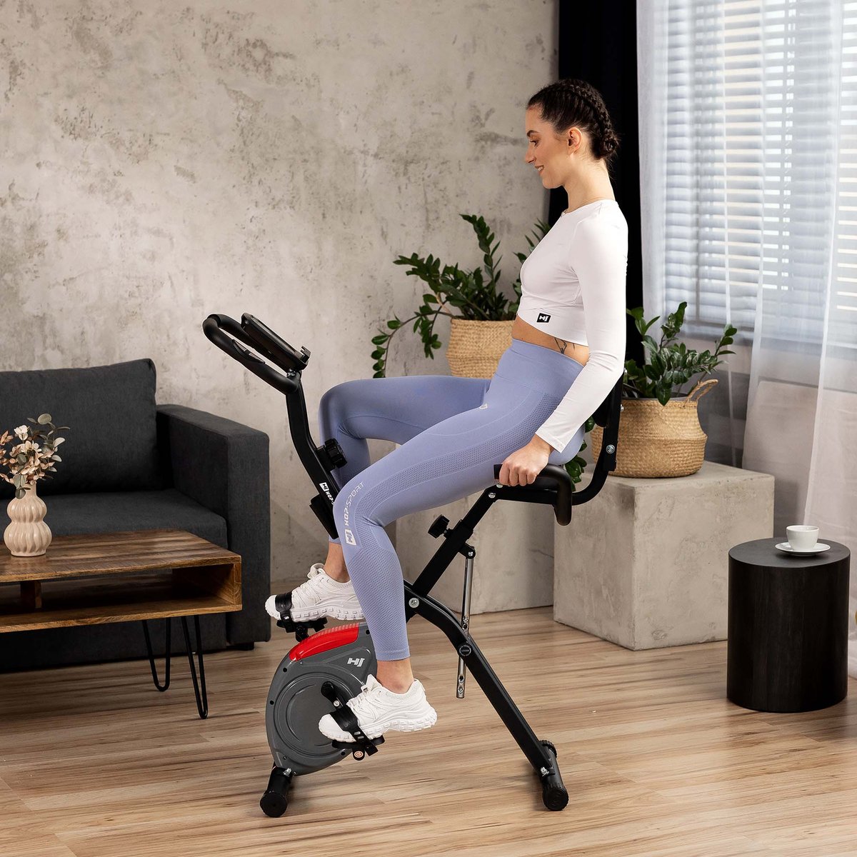 Szukasz roweru stacjonarnego, który pozwoli Ci przeprowadzić intensywny wysiłek kardio, ale ogranicza Cię niewielka przestrzeń treningowa? Postaw na składany rower HS-3030X Apeks marki Hop-Sport, którego wysokość siedziska, jak i kąt rozwarcia wygodnie dostosujesz do swoich preferencji! Model roweru x-bike daje Ci możliwość zmiany ułożenia ciała - możesz trenować jak na tradycyjnym rowerze stacjonarnym lub zamienić go w odpowiednik roweru poziomego. Regulacja obciążenia w zakresie 10 stopni pozwala dostosować intensywność wysiłku do Twojego poziomu zaawansowania, a stabilna konstrukcja zapewnia bezpieczeństwo i gwarantowany udźwig aż do 120 kg.