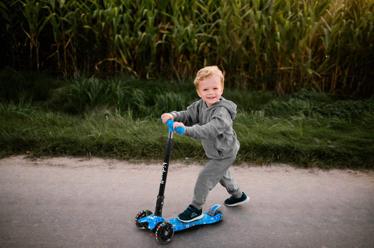 Rowerek biegowy – kilkoma ruchami złóż tylnie koła w jedno szerokie. Dziecko szybko nabierze nowych umiejętności utrzymywania równowagi na rowerkach dwukołowych