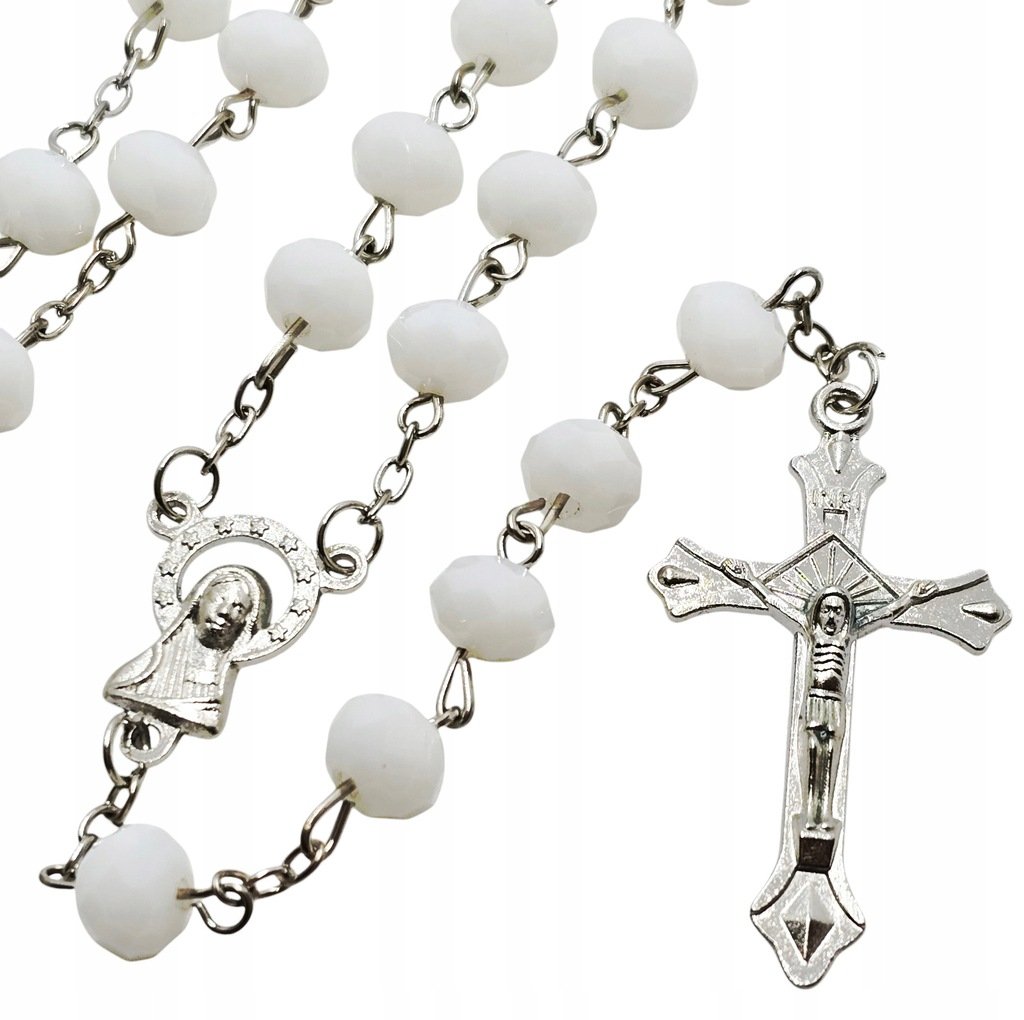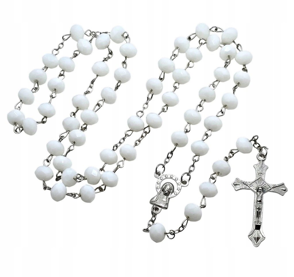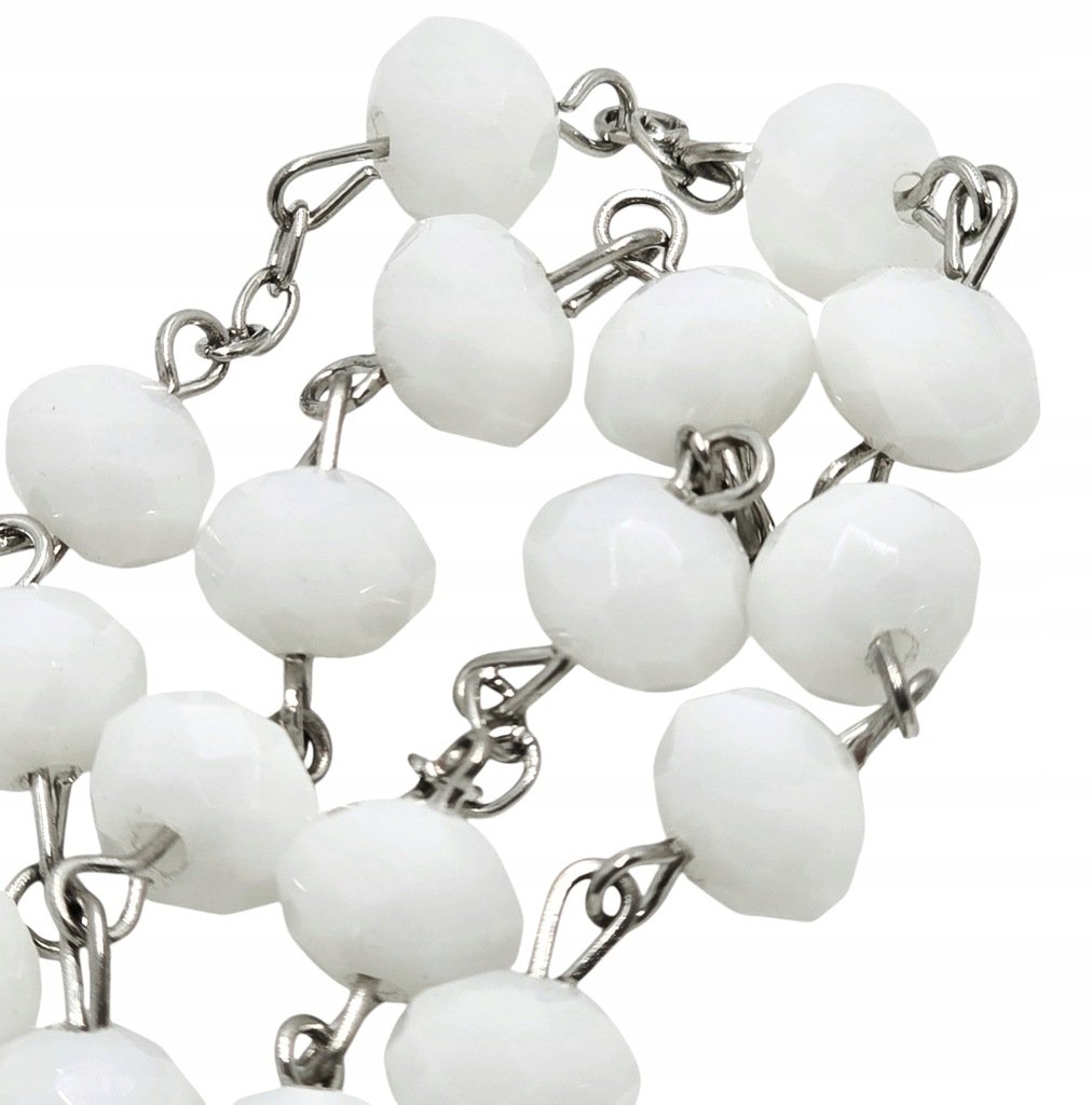 Biały Różaniec z Kryształków - imitacja Opis: Odkryj wyjątkowy, biały różaniec plastikowy, który zachwyca swoim wyglądem. Koraliki przypominające małe kryształki odbijają światło, tworząc efektowny