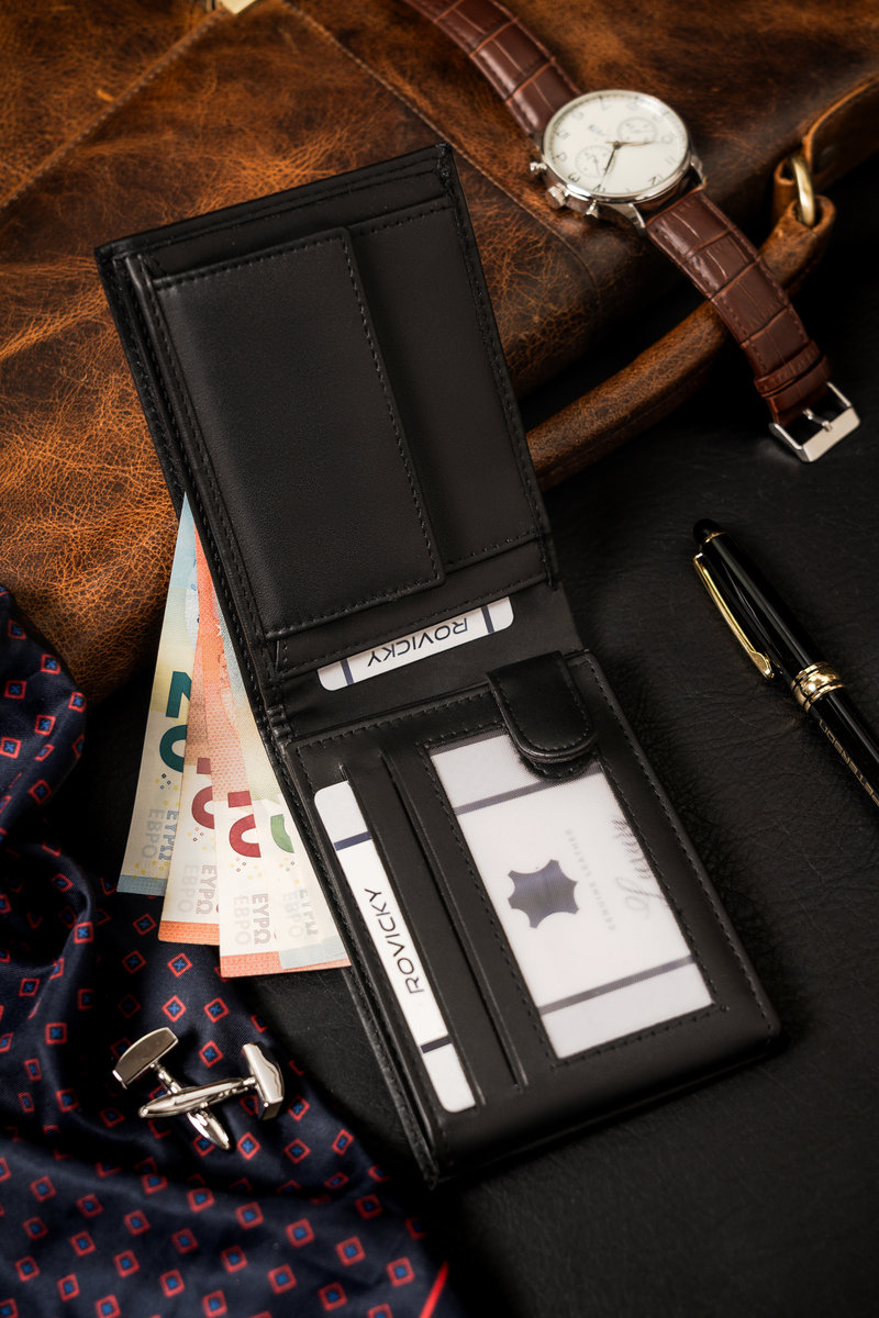 #️⃣ Klasyczny fason | Portfel posiada ponadczasowy klasyczny fason. Dodatkowo czarny kolor sprawia, że model ten pasuje do różnych stylizacji.