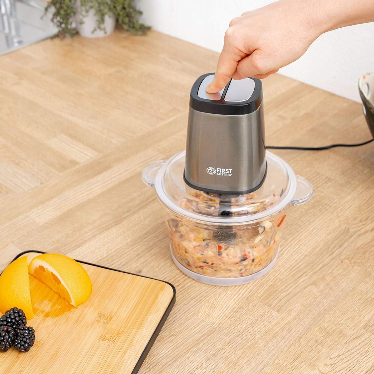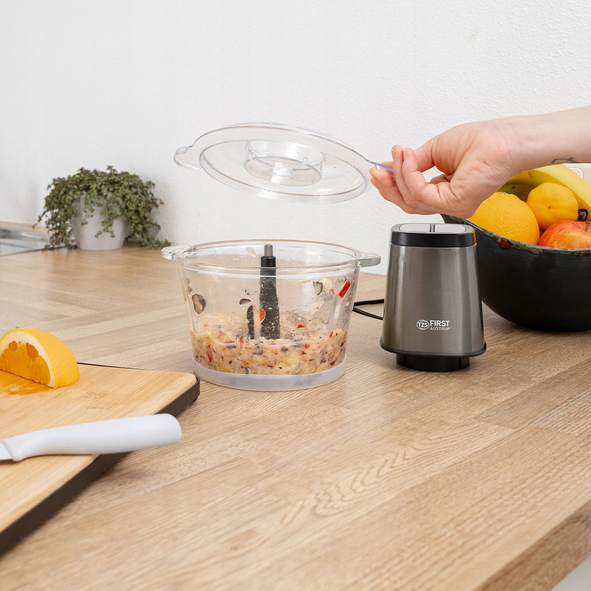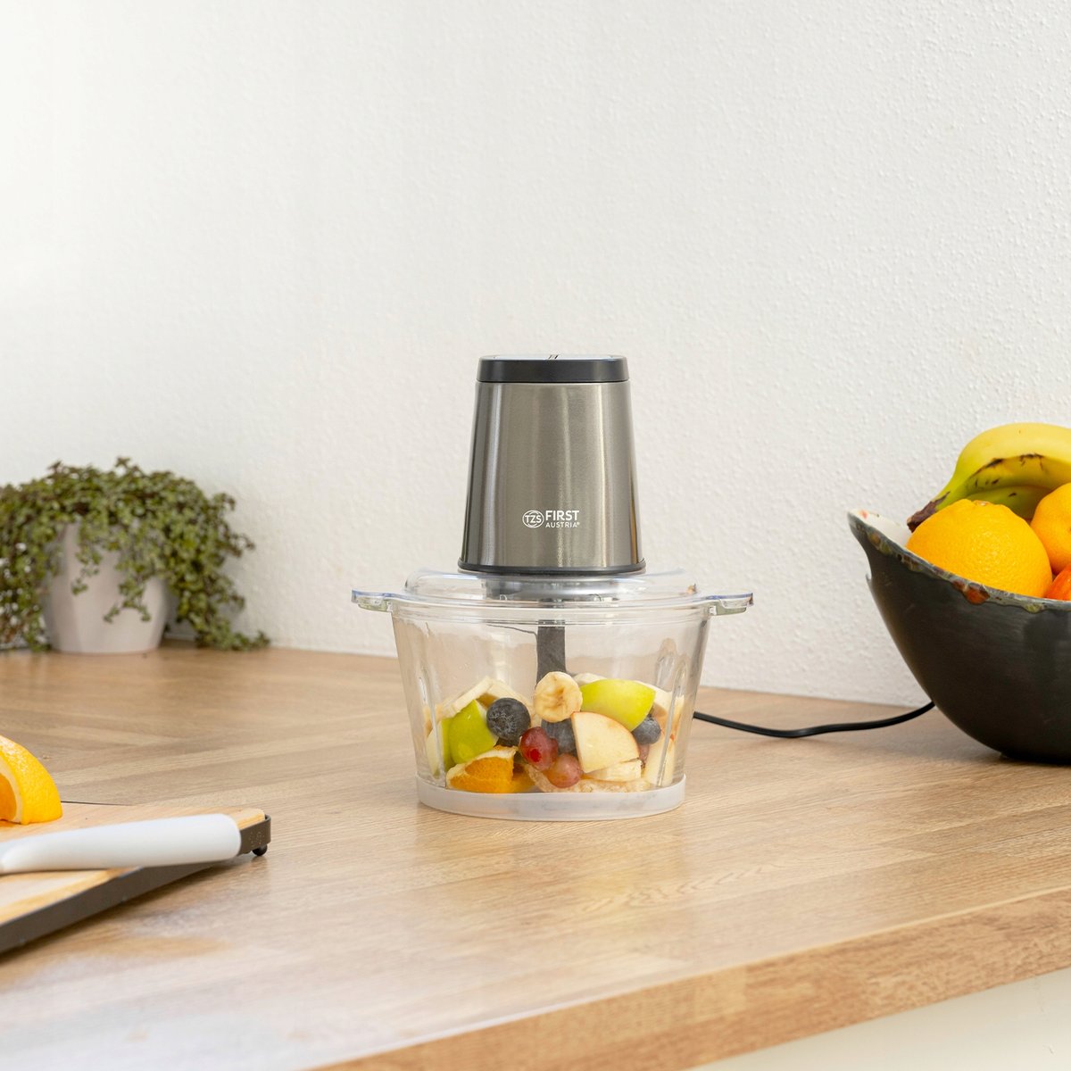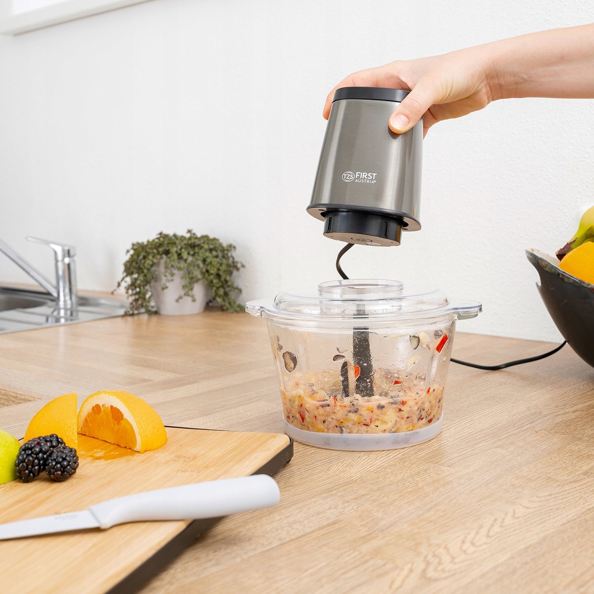 Wysokiej jakości rozdrabniacz kuchenny marki First Austria, który został wyposażony w 4 praktyczne noże miksujące, a dodatkowo możesz go szybko i prosto rozebrać i złożyć.