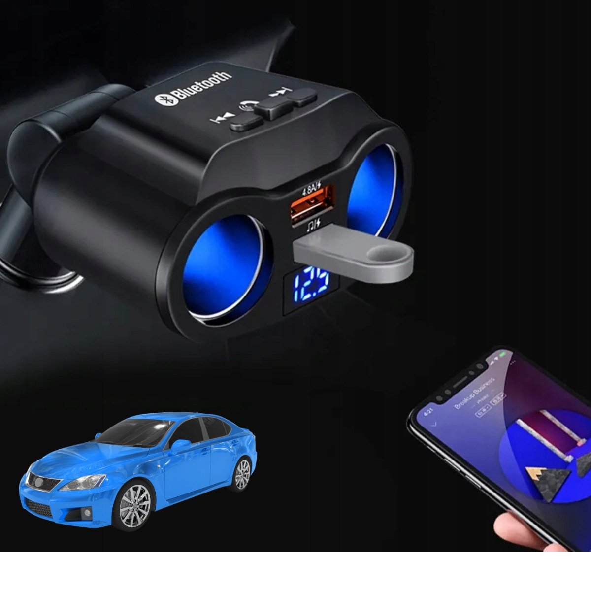 ROZDZIELACZ GNIAZDA + ŁADOWARKA USB + TRANSMITER + MIERNIK NAPIĘCIA 4w1Multimedialne urządzenie samochodowe 4w1, to praktyczny i nowoczesny gadżet, który zwiększa funkcjonalność każdego pojazdu.
