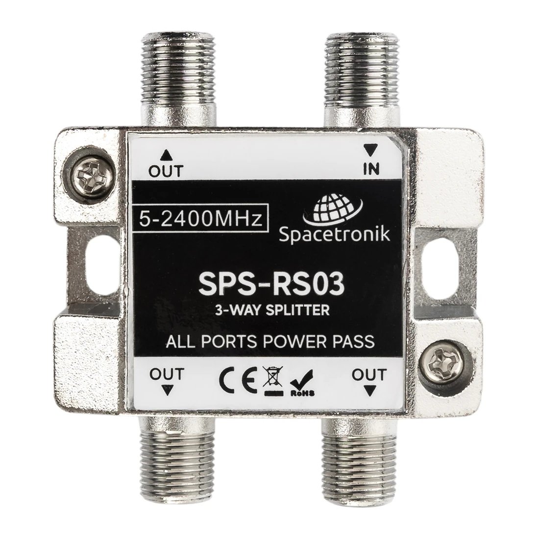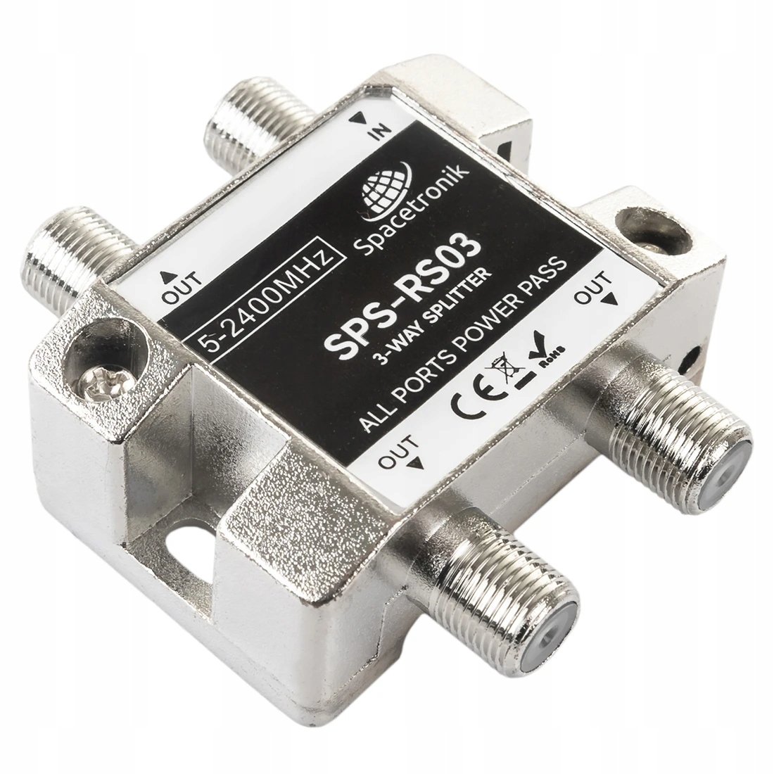Rozgałęźnik 1/3 5-2400 MHz Spacetronik SPS-RS03SKU: SPLITSPS4-03Rozgałęźnik ekranowany 3-drożny Spacetronik SPS-RS03Wysokiej jakości małostratny ekranowany splitter, (rozgałęźnik sygnału ...