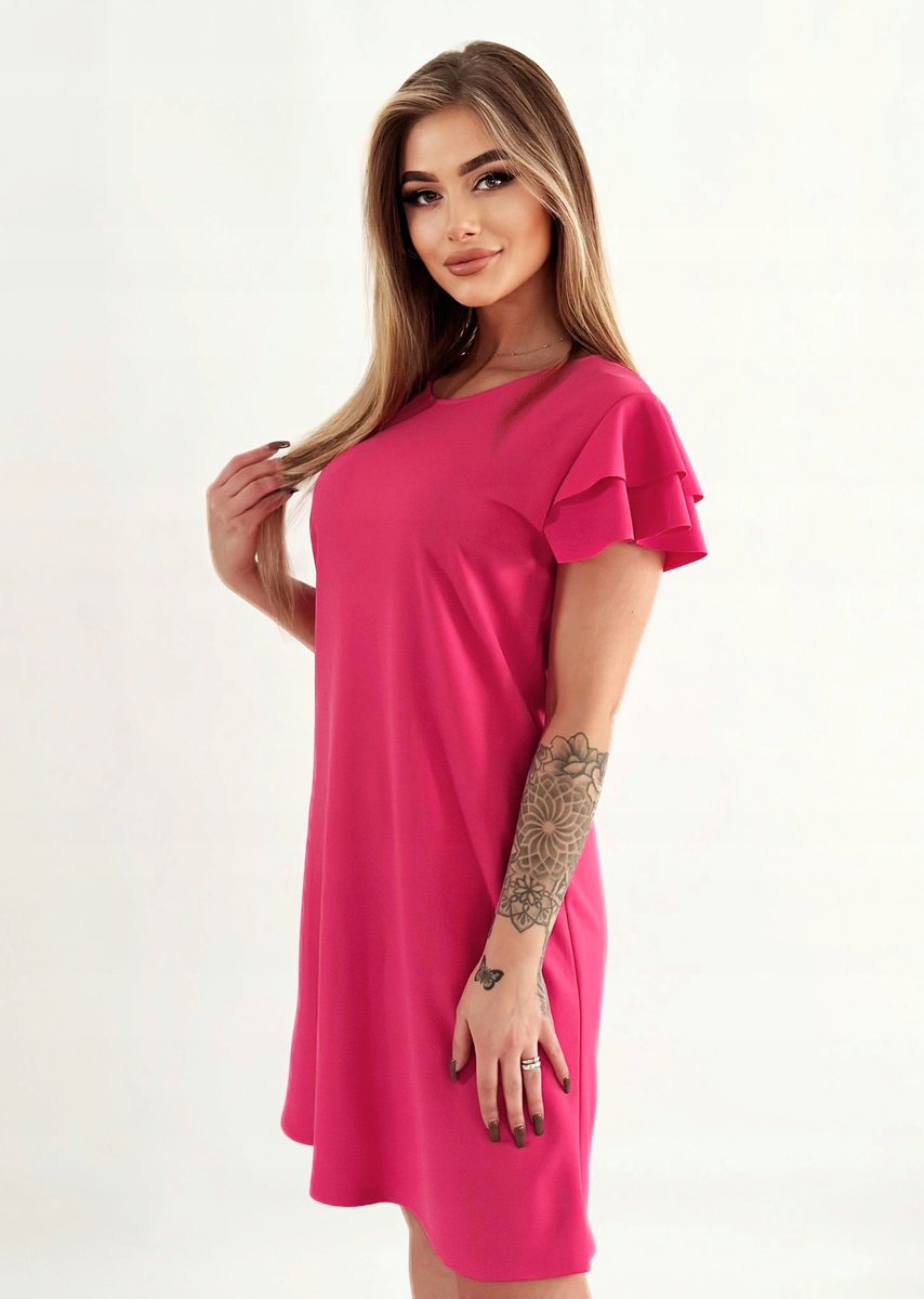 RÓŻOWA KLASYCZNA KRÓTKA TRAPEZOWA SUKIENKA 3XL