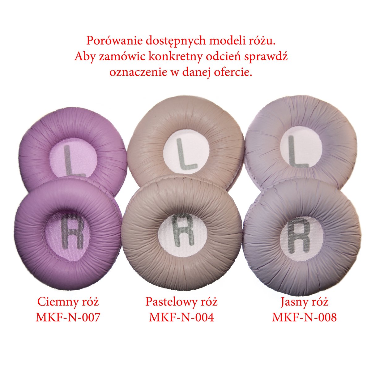 Nauszniki do słuchawek JBLW zestawie znajdują się dwie gąbki na słuchawki (R+L)Zestaw widoczny na zdjęciu po prawej stronie.Kolor pastelowy róż MKF-N-004
