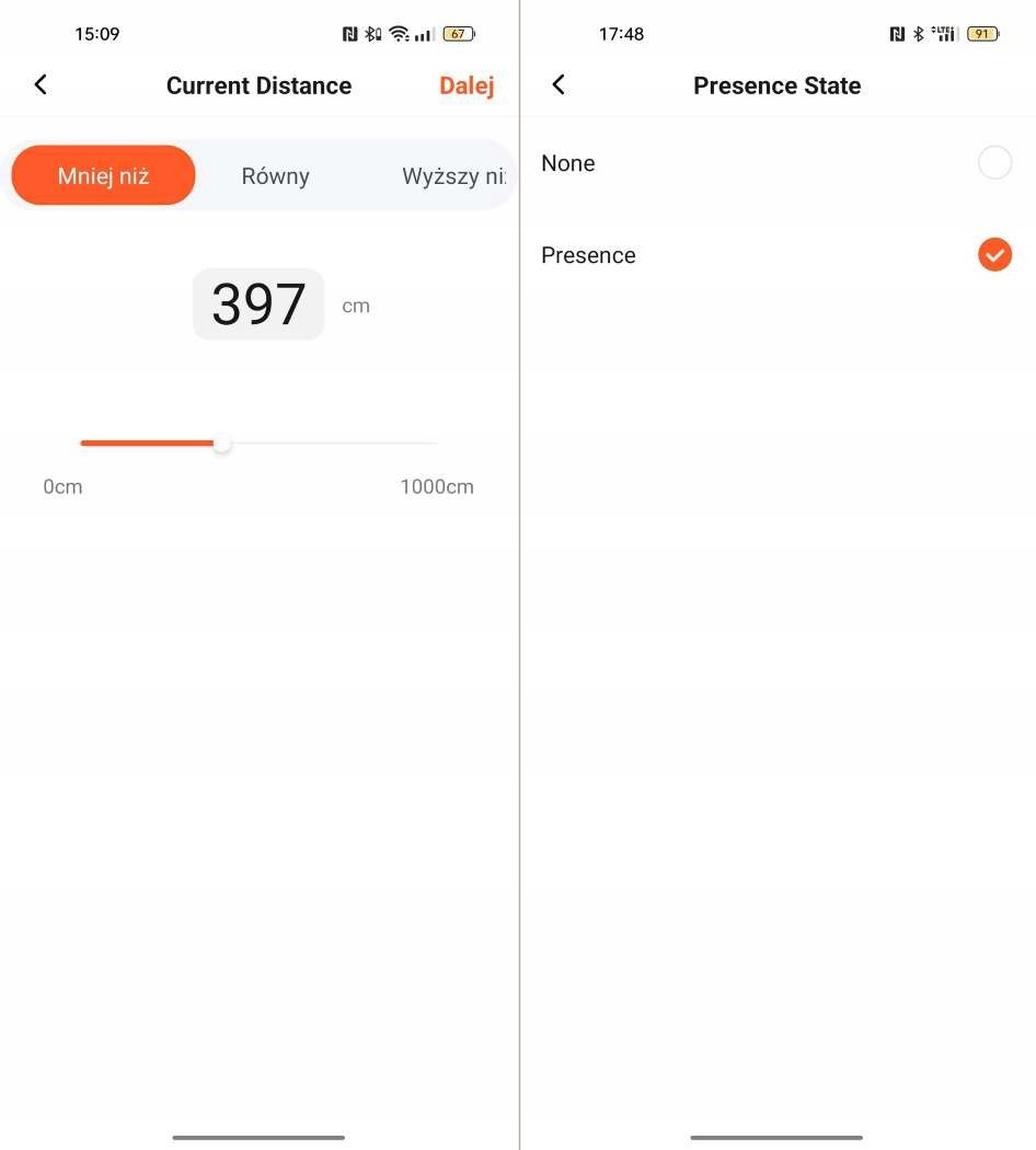 Możliwość sterowania innymi urządzeniami w zależności od odległości wykrycia obecności w ramach ustawionego scenariusza