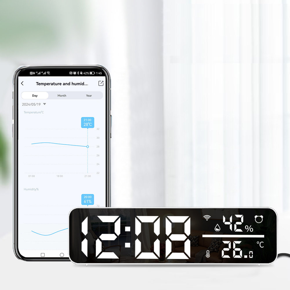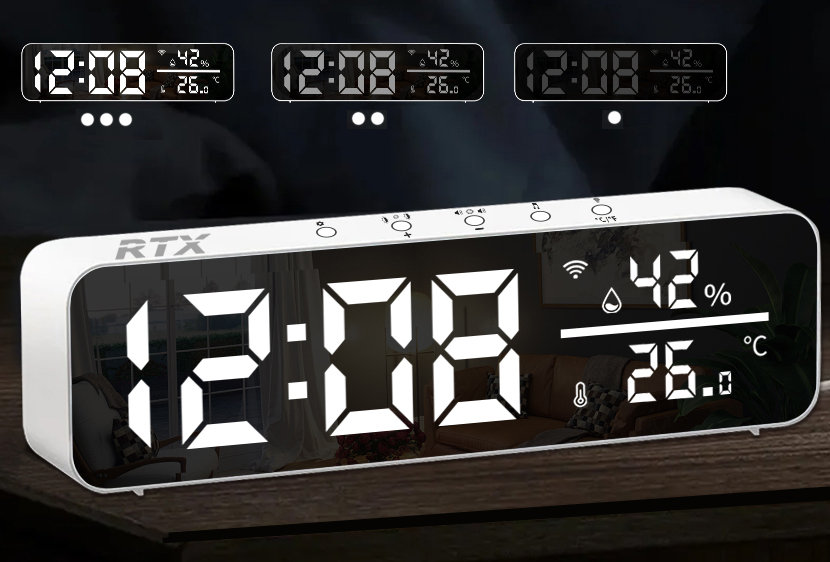 RTX Duży Zegar LED Czujnik Sensor Temperatury i Wilgotności WiFi Tuya RTX Duży zegar LED z czujnikiem temperatury i wilgotności Bezprzewodowy czujnik temperatury i wilgotności WiFi ...