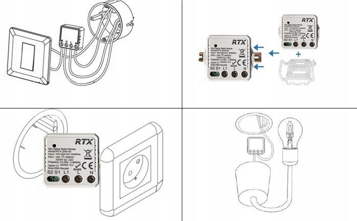 | Nazwa: | RTX Mini Przekaźnik Sterownik Oświetlenia Moduł 1kanał LN TUYA ZigBee +RF |