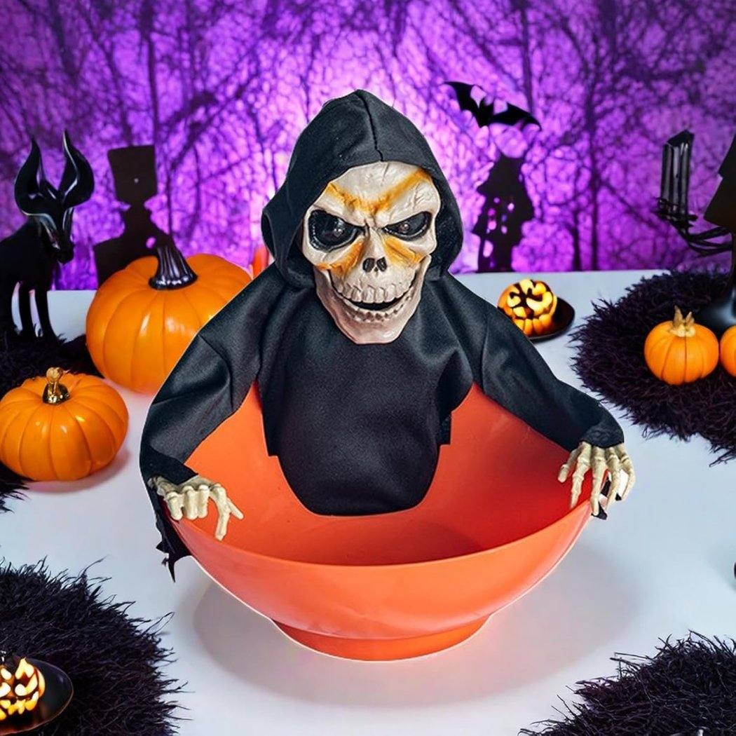 Dodaj tę ruchomą miskę na słodycze do swoich dekoracji Halloween i ciesz się niezapomnianą atmosferą święta duchów.