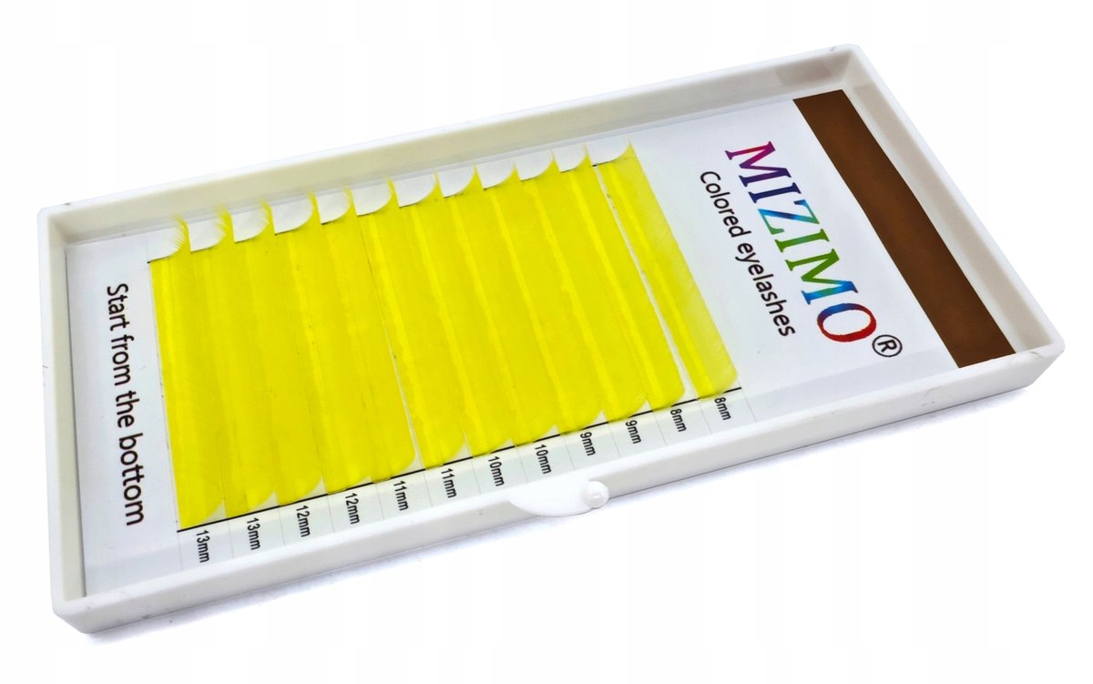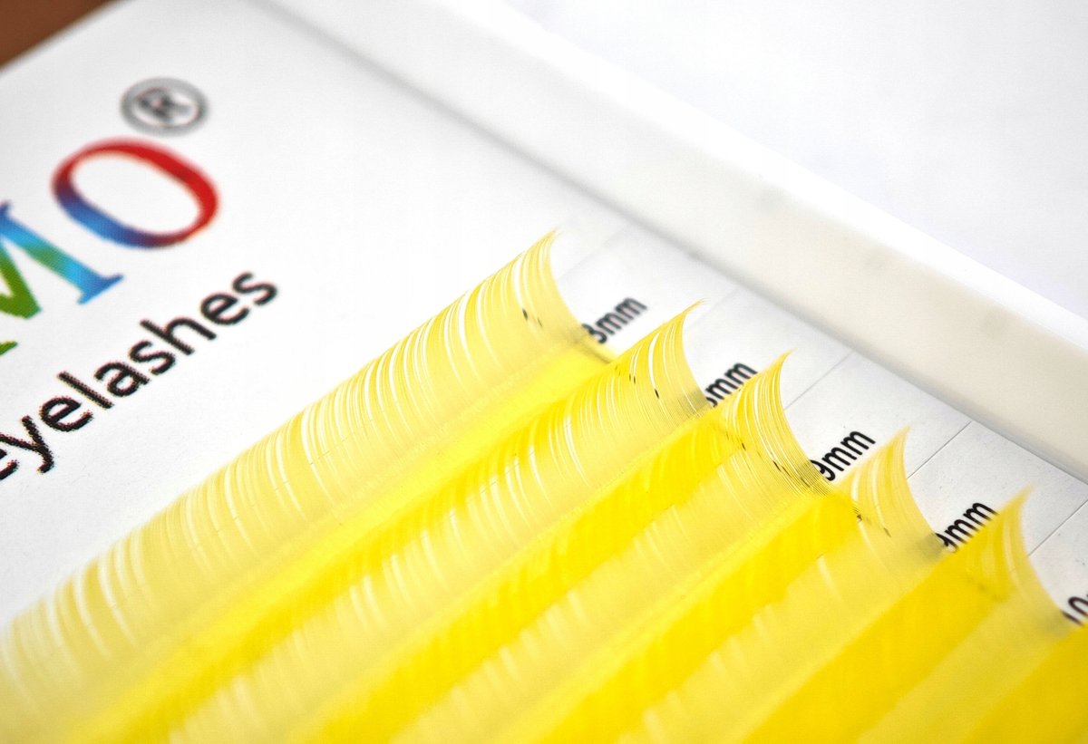 Pojedyncze Kolorowe Rzęsy do przedłużania8-13mm, curl D, 12 paskówŻółte Pojedyncze Rzęsy Kolorowe do przedłużaniaZestaw 6 długości:8mm, 9mm, 10mm, 11mm, 12mm, 13mmMateriał ...