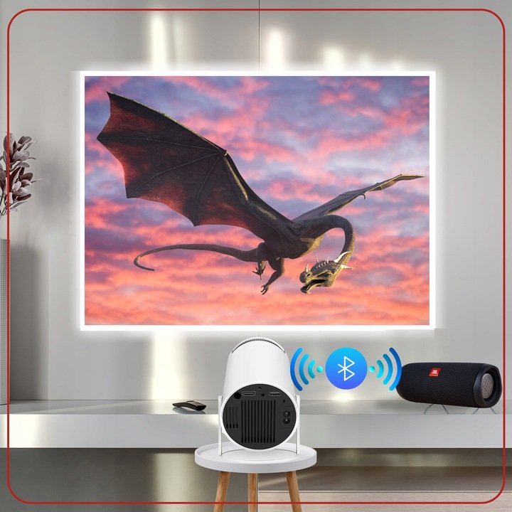 Błyskawiczne połączenie z Internetem i Twoimi urządzeniami! Projektor wyposażony jest w najnowsze moduły Wi-Fi 6.0 i Bluetooth 5.0, co oznacza stabilny sygnał i możliwość podłączenia słuchawek, głośników czy telefonu bez żadnych kabli.