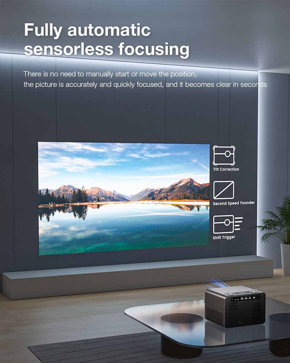 BlitzWolf BW-V7 posiada funkcję automatycznego ustawiania ostrości, co pozwala na szybkie i precyzyjne dostosowanie ostrości obrazu bez konieczności ręcznego interweniowania. Dodatkowo projektor wyposażony jest w automatyczną korekcję trapezoidalną, która zapewnia prosty i poprawny obraz niezależnie od kąta projekcji.