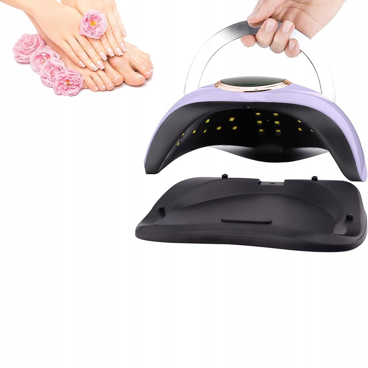 Lampa UV LED do paznokci o mocy 168 W: Koralik UV LED wykorzystuje podwójne źródło (365nm 405nm), 36 koralików jest rozproszonych wewnątrz, a czas utwardzania żelu do paznokci jest krótszy niż 30 sekund, trzy razy szybszy niż zwykłe lampy UV do paznokci. Uchwyt ułatwiający transport i wyjmowaną płytę dolną ułatwiającą czyszczenie.