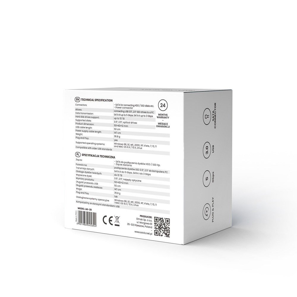| Nazwa: | Savio, Adapter USB 3.0 do dysków 3.5” z zasilaniem, AK-39 |