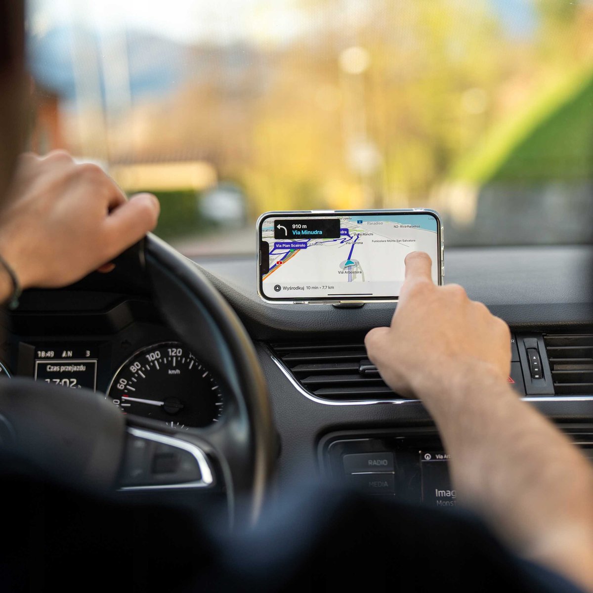Uchwyt zapewnia optymalną pozycję dla wzroku kierowcy, co poprawia bezpieczeństwo podczas jazdy. Telefon może być obsługiwany jedną ręką praktycznie bez odrywania wzroku od drogi. Jest to zarówno wygodne, jak i bezpieczne rozwiązanie dla użytkowników.