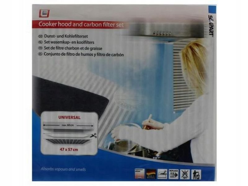 SCANPART Filtr tluszczu i wegla aktywnego do okapu 2szt. 1530050015 Najważniejsze cechy Rodzaj: Filtr węglowy- włókninowy