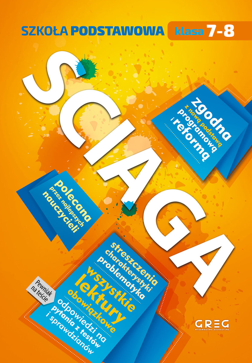 Ściąga przeznaczona dla klas 7-8 zawiera opracowania wszystkich obowiązkowych w tych dwóch latach nauki lektur i wierszy. Można tu znaleźć biografię autora, plan wydarzeń, dokładne charakterystyki bohaterów, szczegółowe streszczenia i wyczerpującą problematykę każdego utworu, a w przypadku wierszy także omówienia ich budowy. Wszystko przedstawiono przystępnym językiem, który sprawia, że praca z książką jest łatwa i przyjemna.
