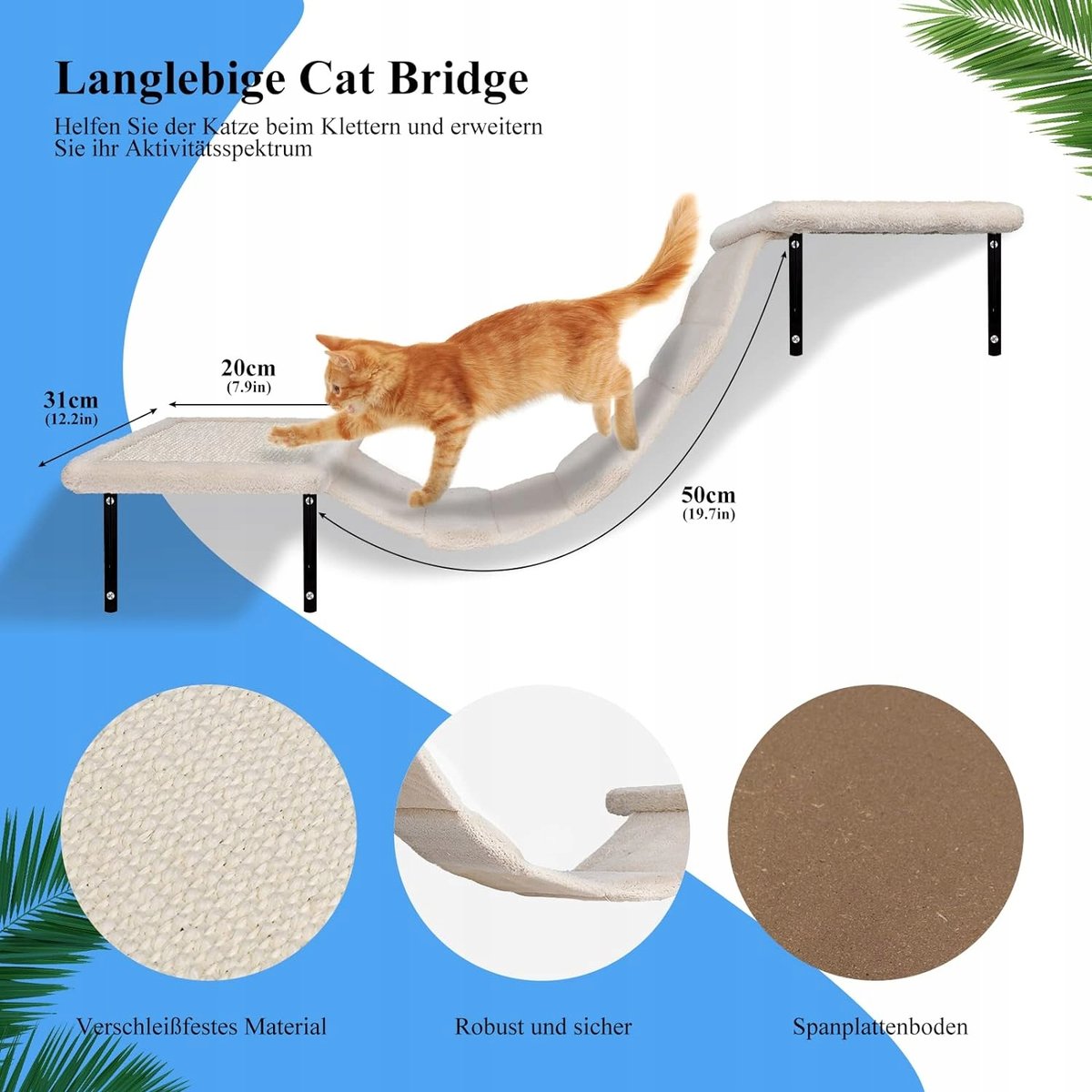 Zvonema Ścianka wspinaczkowa dla kotów, 10-częściowy zestaw ścianek do wspinaczki, duży most wiszący, kolumny do drapania z sizalem, regał ścienny do zabawy z kulką śladową, meble dla kotów do użytku wewnątrz do 10 kg