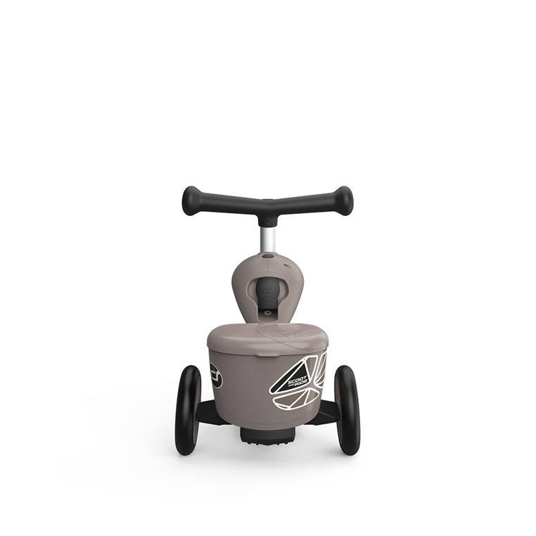 Bez używania narzędzi, za pomocą jednego guzika można w kilka sekund zamienić pojazd w hulajnogę na 3 kołach – obrócone siedzisko staje się jej przednią ramą. Wystarczy jeszcze przenieść kierownicę (montowana na klik) i gotowe! Teraz także starszak może rozpocząć swoją scaterską przygodę. |