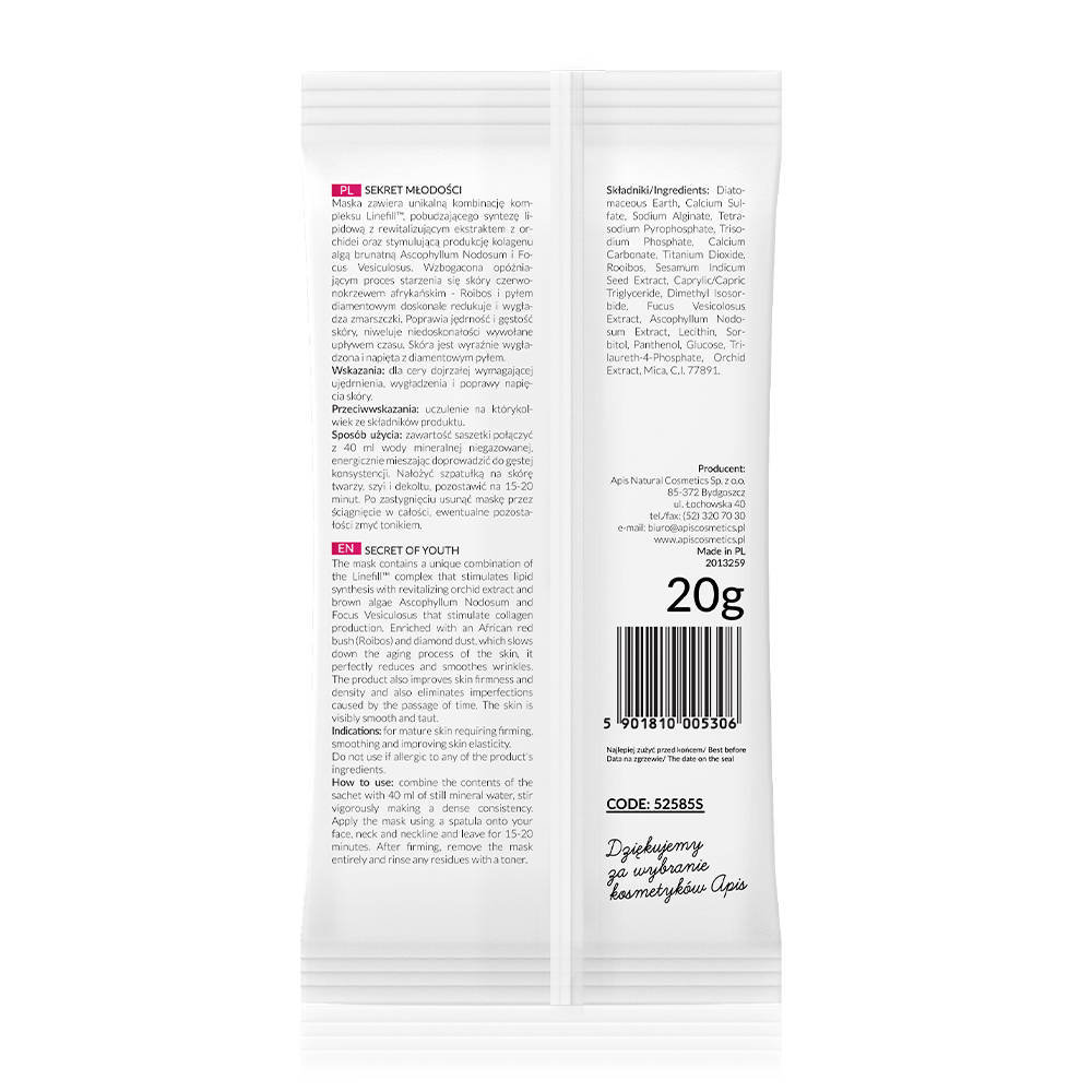 | Nazwa: | Apis, Sekret Młodości, Maska algowa wypełniająco-napinająca, 20g |
