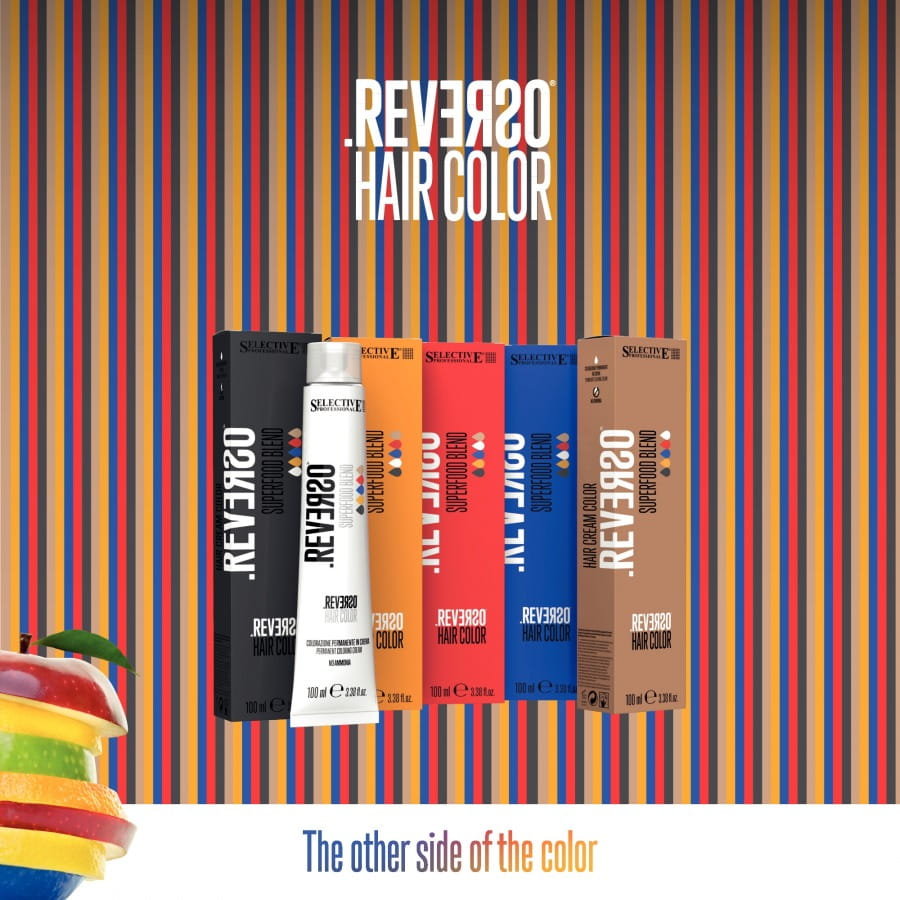 - REVERSO to nowy kosmetyk do koloryzacji w kremie, opracowany we Włoszech, w laboratoriach Selective Professional, wzbogacony mieszanką pigmentów innowacyjnej generacji oraz mieszanką skoncentrowanych ekstraktów roślinnych odżywiających włosy w sposób wyjątkowy.