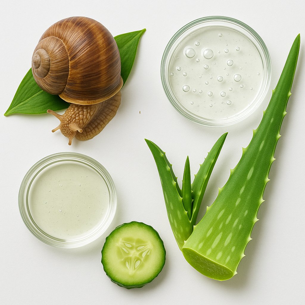 ? Śluz ślimaka (filtrat): Naturalne źródło kolagenu, alantoiny, elastyny i witamin A, C, E. Działa regenerująco, łagodząco i przeciwstarzeniowo.