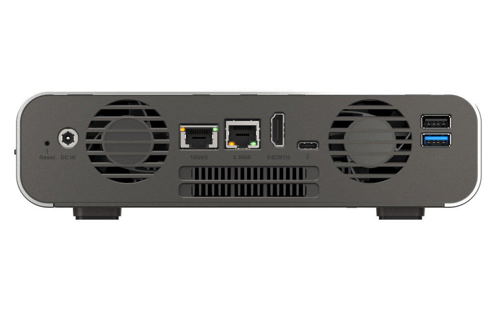 - Standardowo 2,5 GbE i 10 GbE - Sieci 2,5 GbE i 10 GbE przyspieszają przesyłanie dużych plików i umożliwiają podłączenie większej liczby urządzeń/stacji roboczych poprzez podłączenie przełącznika sieciowego.