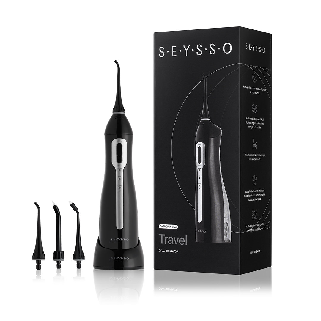 Irygator bezprzewodowy SEYSSO Carbon Travel to urządzenie stworzone z myślą o wygodnej pielęgnacji jamy ustnej zarówno w domu, jak i w podróży. Akumulator wbudowany w urządzenie zapewnia do 70 minut użytkowania na jednym ładowaniu (około 14 dni, przy używaniu irygatora dwa razy dziennie po 2,5 minuty). Kształt i wielkość urządzenia sprawiają, że jest ono idealne do podróżowania.