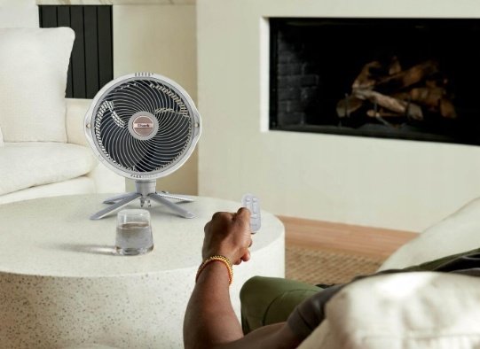 - Zmieniaj się w ciągu kilku sekund: przełączaj między dwoma trybami wentylatora – stojącym i stołowym za pomocą jednego przycisku. Wystarczy nacisnąć, podnieść i cieszyć się rozpylaniem i oscylacją w obu trybach