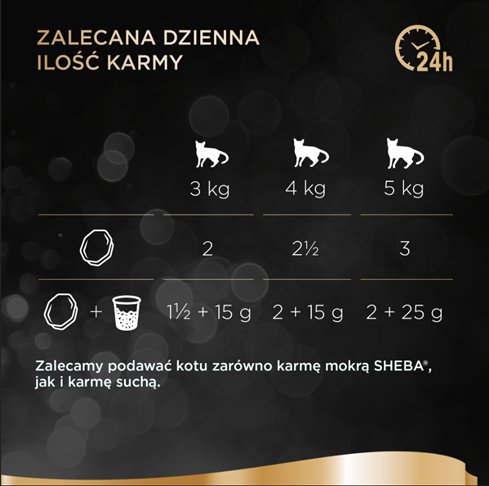 Zalecamy podawać pełnoporcjową mokrą karmę dla kota SHEBA® oraz suchą karmę dla kota.
