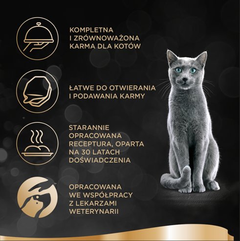 Należy uwzględnić kalorie pochodzące z przysmaków. Uwzględnij okres przejściowy i dostosuj ilości karmy, dzieląc ją na posiłki stosownie do potrzeb zwierzęcia. Zapewnij kotu świeżą wodę do picia. Karmę dla kota należy podawać o temperaturze pokojowej. Niewykorzystaną część przechowywać w lodówce do 2 dni.