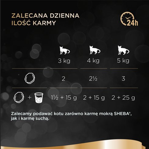 Zalecamy podawać pełnoporcjową mokrą karmę dla kota SHEBA® oraz suchą karmę dla kota.