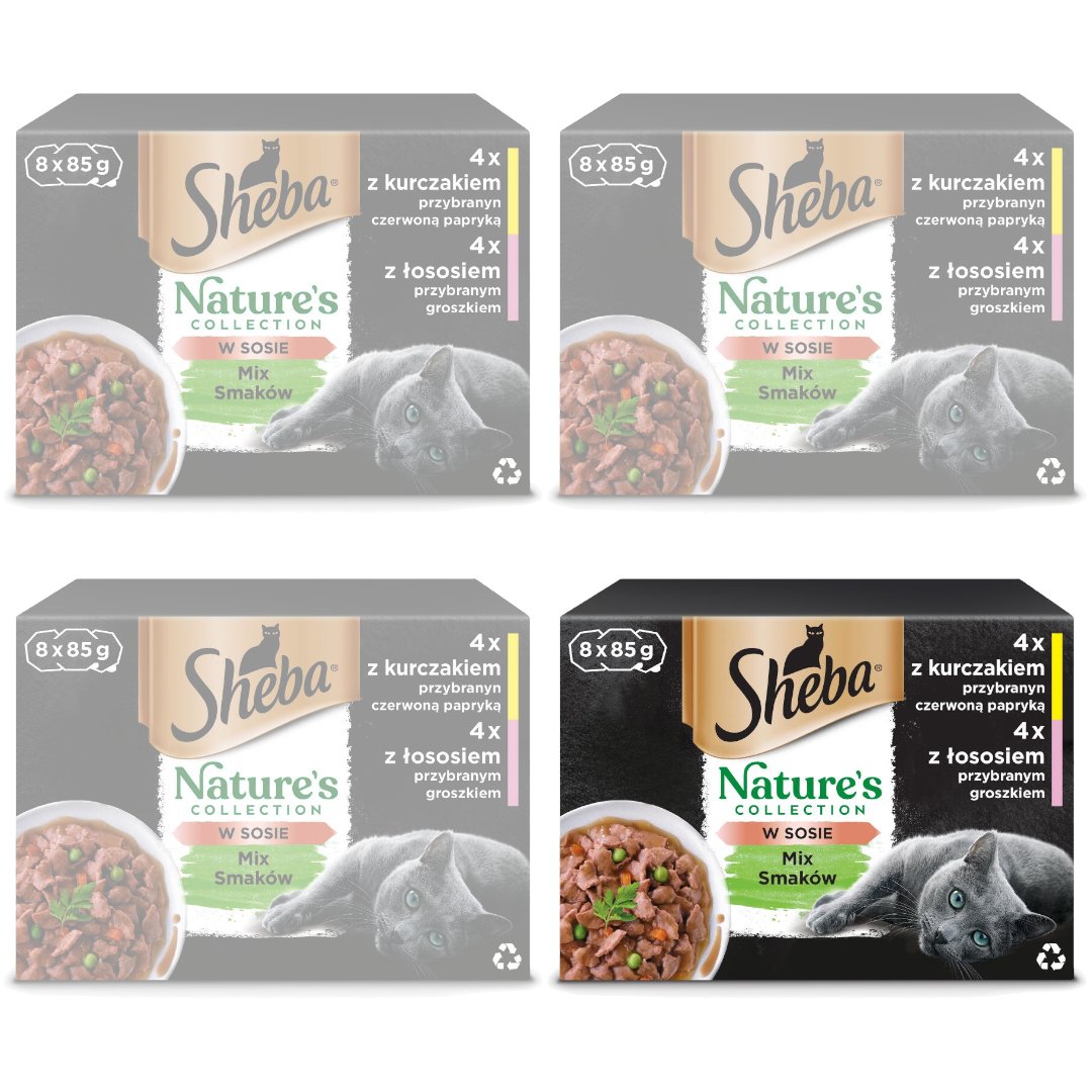 Sheba Tacka 32x85g Mix Smaków Mokra Karma W Sosie Dla Dorosłych Kotów Kurczak Łosoś SHEBA® Nature's Collection Mix Smaków to karma, która zaspokoi wymagania nawet najbardziej ...