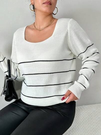 | Nazwa: | Shein Plus Size Sweter Damski Plus Size Ecru w Paski 48 Łud |
