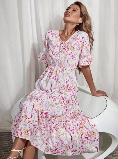 SHEIN SUKIENKA Z KRÓTKIM RĘKAWEM WZORZYSTA