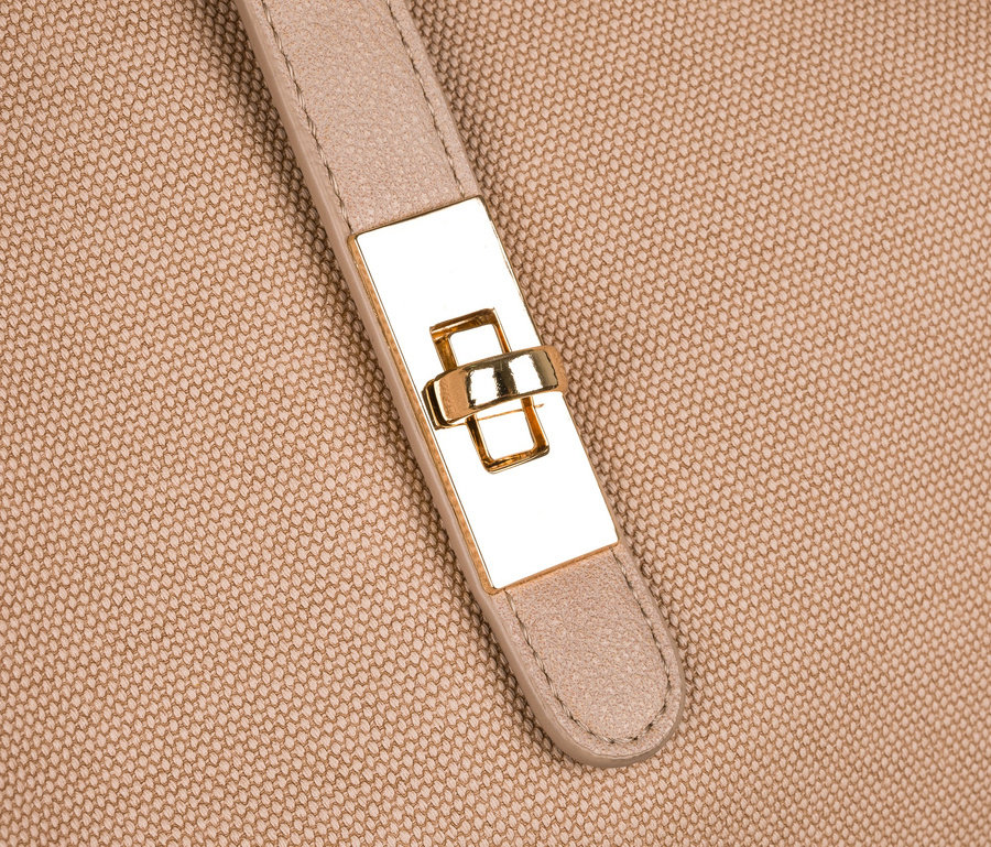 Rewelacyjna torebka damska z doskonałej jakości materiału. Front torebki został uszyty z syntetycznego materiału, natomiast jej tył z eko skóry. Wszystkie jej metalowe elementy są w kolorze starego złota, co idealnie kontrastuje z barwą materiału.