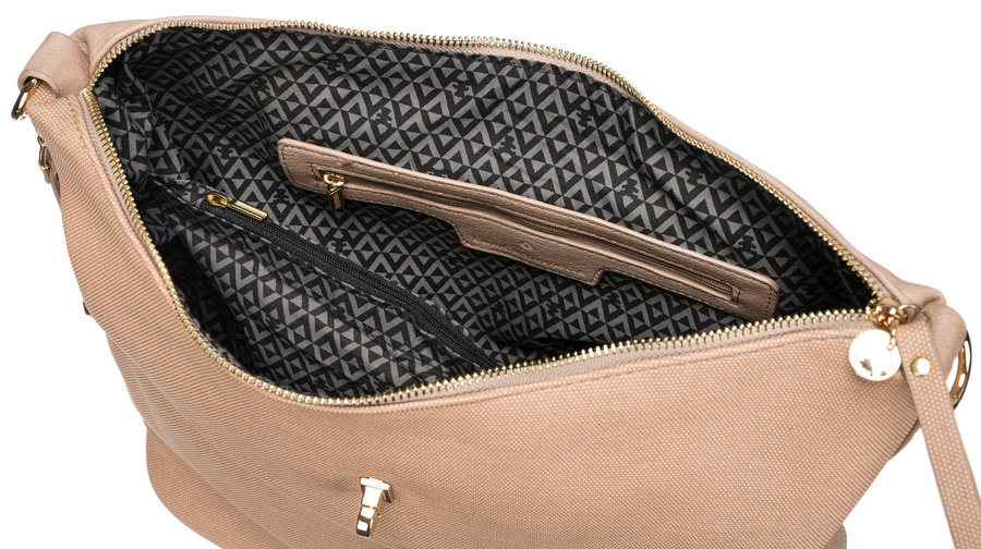 Wnętrze wyposażono w 4 praktyczne kieszonki, w których Twojego drobiazgi szybko znajdą swoje miejsca. Dwie z nich są zamykane suwaczkami, reszta otwarta.